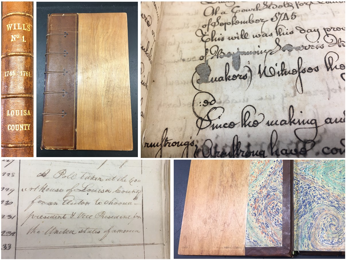 I concluded my February travel with a visit to the records room of Louisa County circuit court clerk Patty Madison in Louisa, Virginia. She had contacted me to visit specifically for advice about conservation options for the county’s oldest will book, so that was the primary target for examination, along with other items in need of conservation in the main records room. I had less opportunity to seek “human interest” stories, but I can assure you from my previous visits, there are many!
