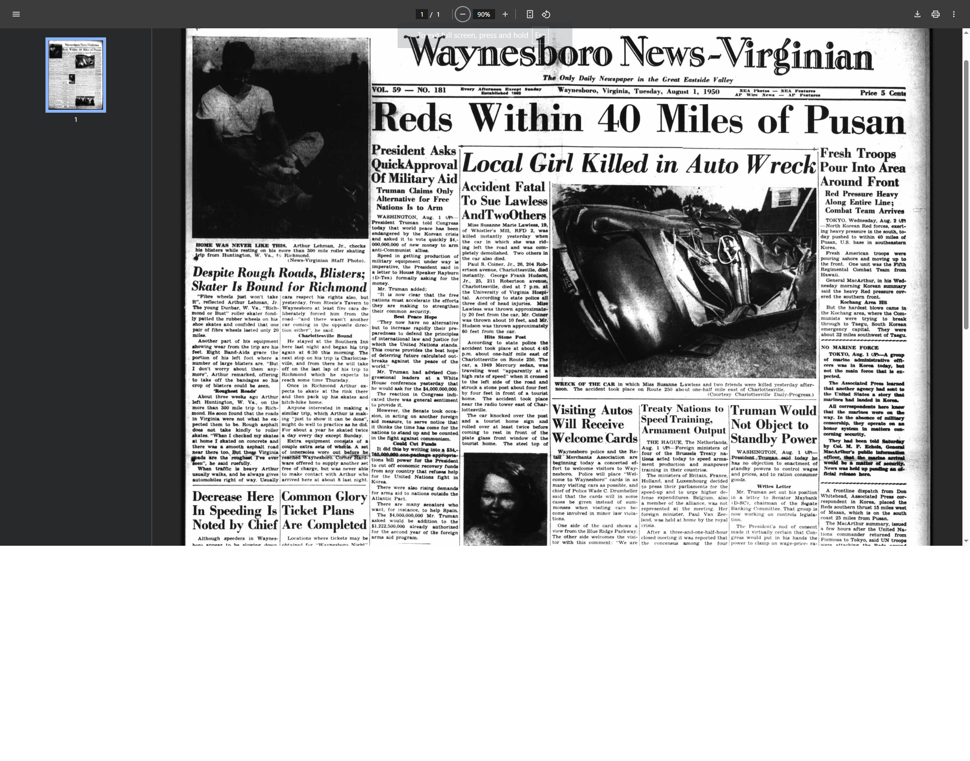 Daily Review (Clifton Forge, VA), July 26, 1950.